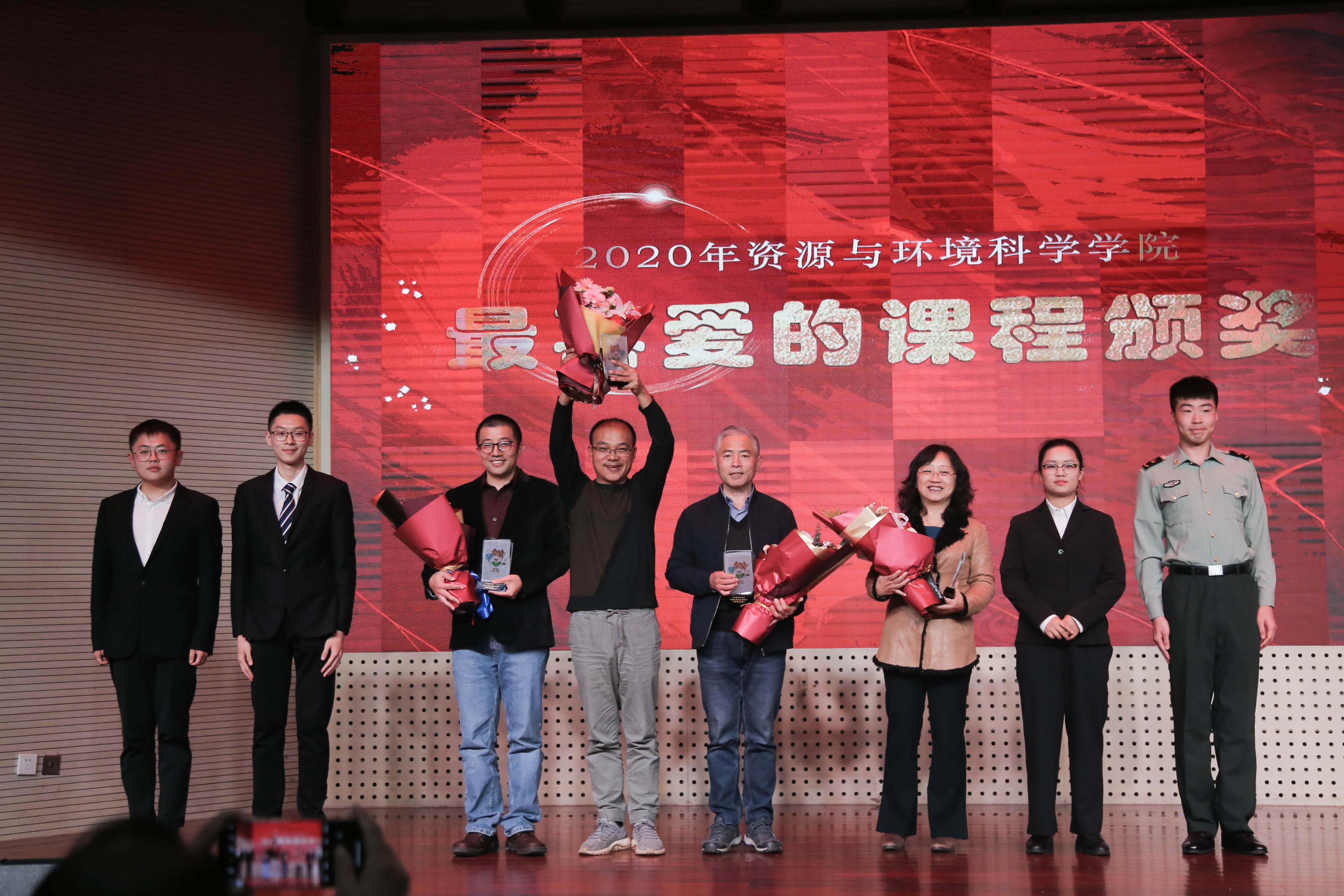 现场还为在学生节中“资环之星”优秀学子评选、“学生最喜爱的老师和课程”评选获奖者颁奖。陈天一、赵洪燊、陈爽、高钲媛、王志军获评“资环之星”。孙明明、吴双、杨新萍、李真、康福星五位老师获得学生最喜爱的老师。《陶艺欣赏》、《环境学》、《土壤学》、《环境地学》、《环境毒理学》五门课程获评学生最喜爱的课程。