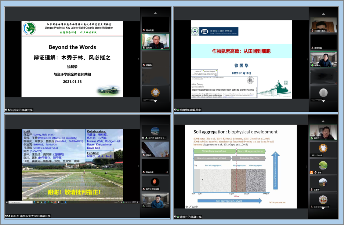 学科(方向)带头人沈其荣教授、徐国华教授、赵方杰教授、潘根兴教授、邹建文教授、高彦征教授、周立祥教授、刘满强教授介绍了近年来课题组取得的重要成果 ;李荣教授、刘树伟教授、韦中教授、于振中教授4名青年学术骨干交流了前沿进展;av直播