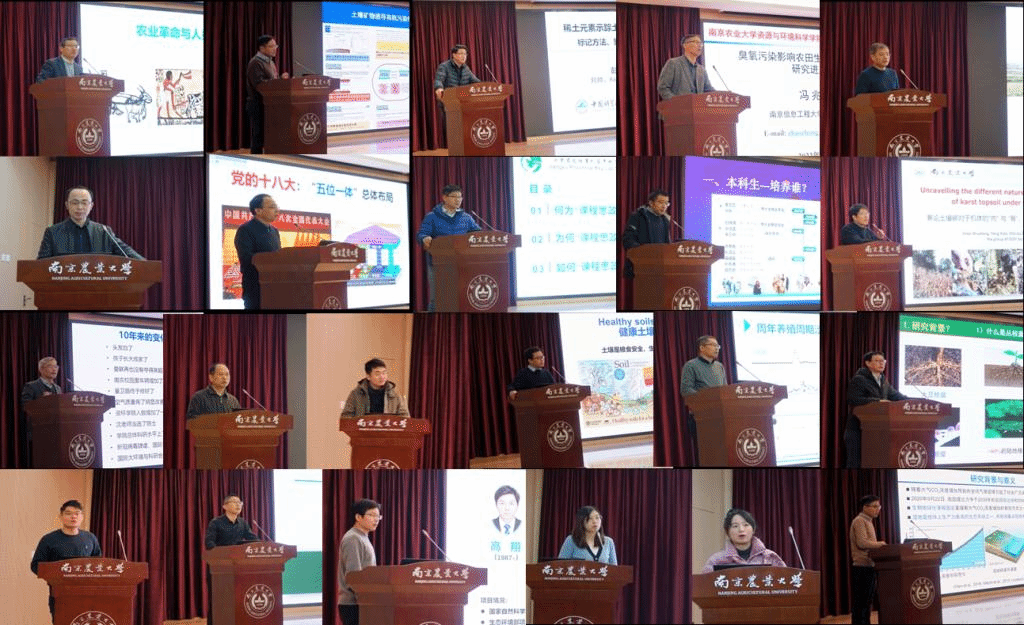 冯兆忠教授、南京大学周东美教授五位特邀专家分别做了题为“水稻土的形成演化及其资源环境意义”“有机污染物在土壤矿物界面的非水相催化转化机制研究”“稀土元素示踪土壤团聚体周转:方法、模型与驱动因素”“臭氧污染影响农田生态系统碳氮循环过程研究进展与展望”“稻田系统自由基过程及其环境效应研究”的专题报告。