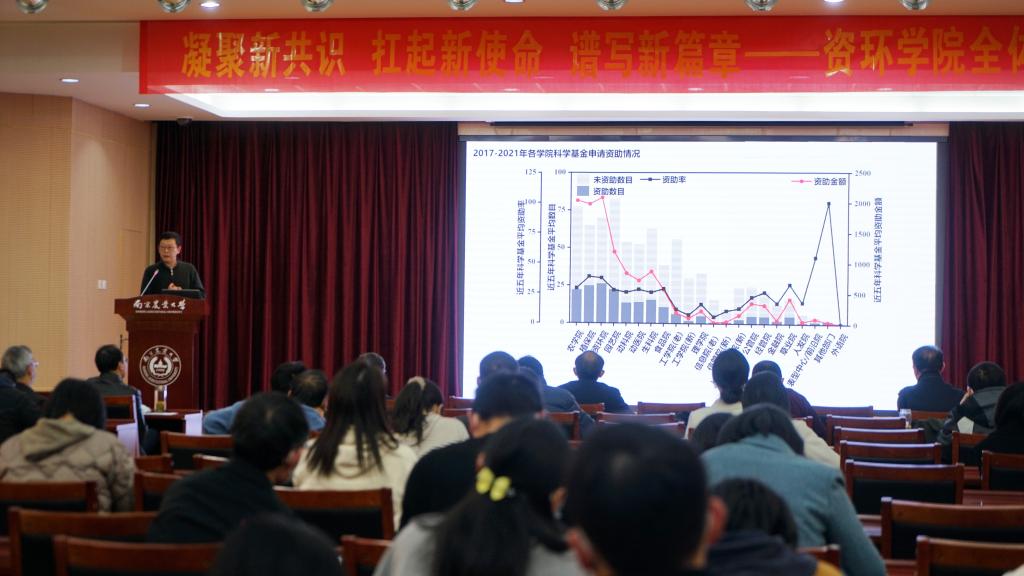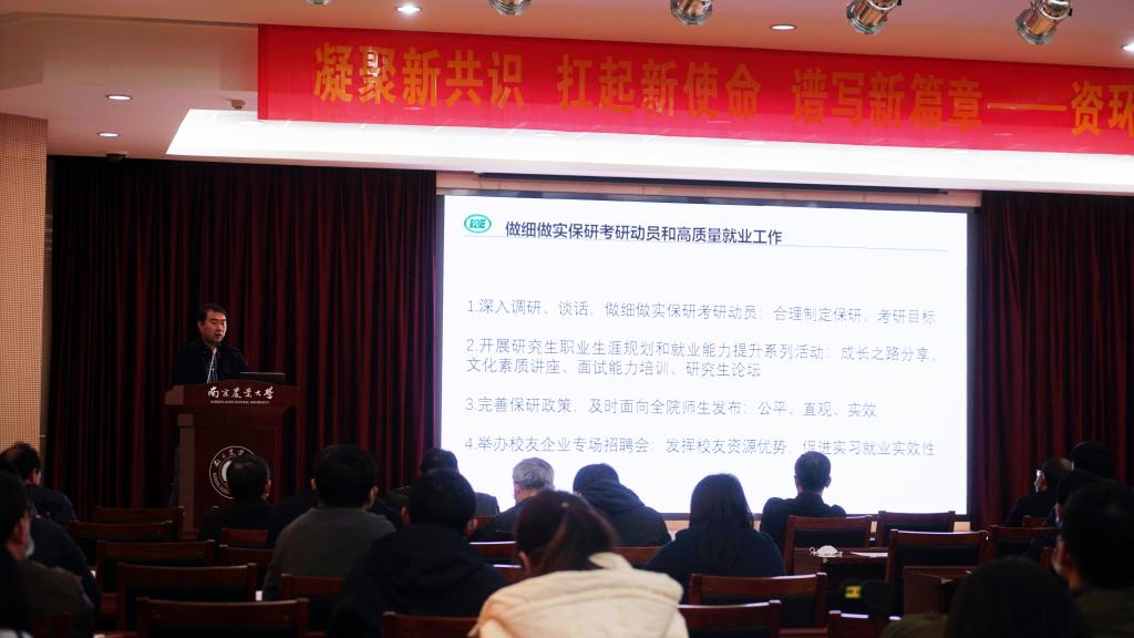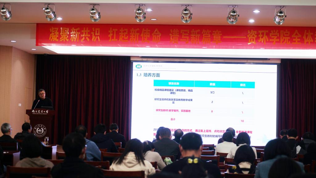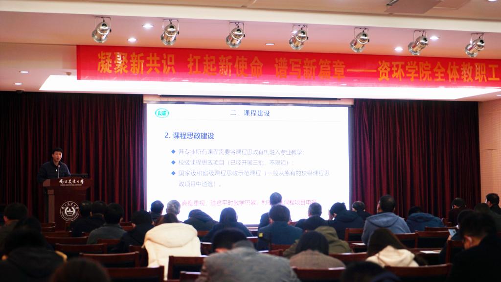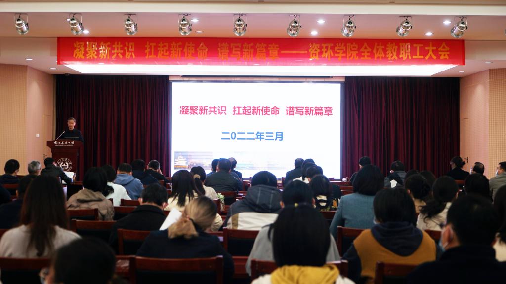 全体教师大会上的讲话精神,号召全院教职工弘扬“奋斗成就梦想”资环精神,直面问题,破解难题,凝聚新共识,扛起新使命,谱写新篇章。院长邹建文作大会主报告,院党委书记全思懋主持会议。