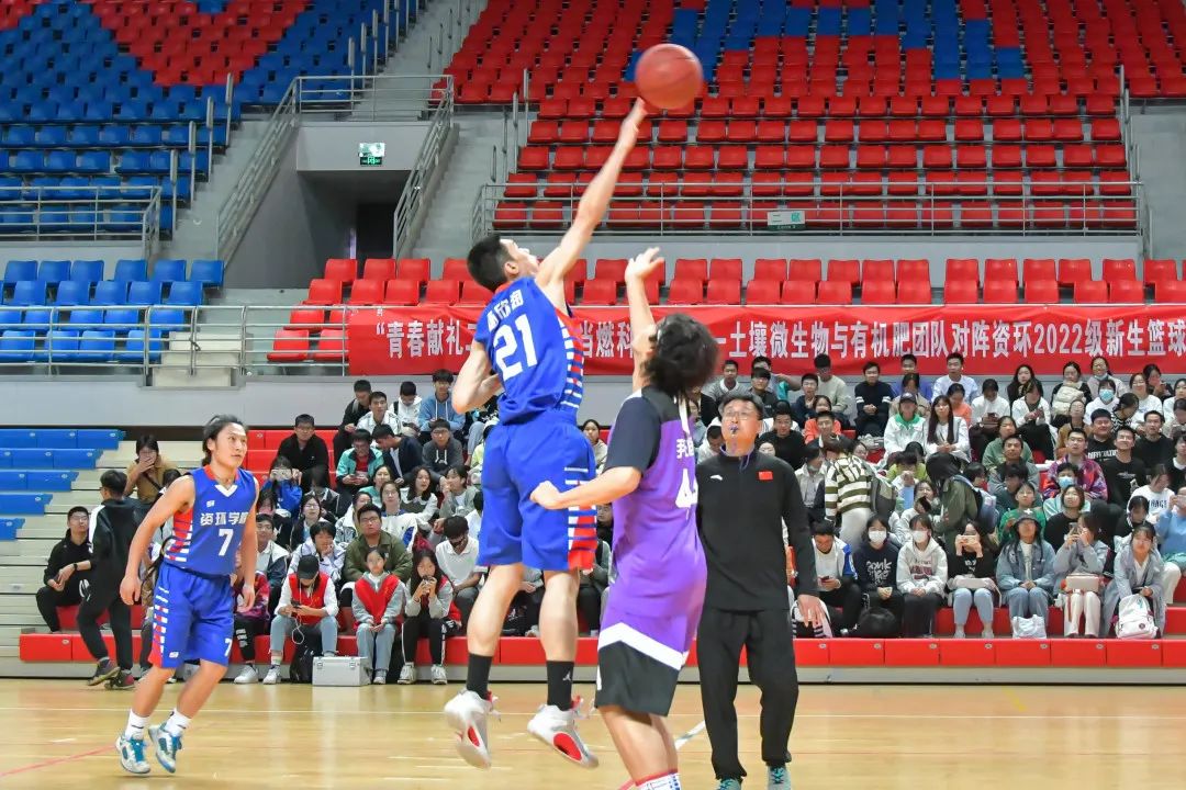 2022级新生开展了一场有温度的入学教育——“青春献礼二十大,篮球当燃科研心”土壤微生物与有机肥团队对阵资环2022级新生篮球赛。