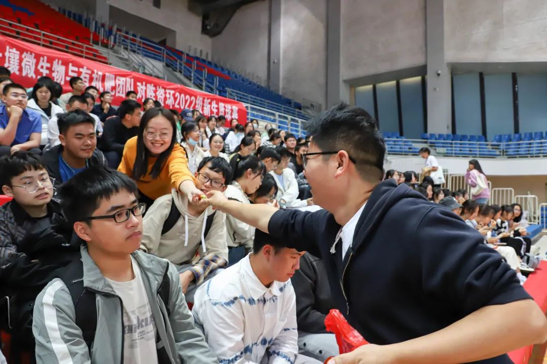 “入学时收到沈院士团队的梨子作为礼物,也了解到沈其荣院士在土壤微生物和有机肥方面的成就。得知今天能有机会和沈院士面对面交流,大家都非常激动!不管是在球场上还是在课堂上,我都深深感受到了沈院士的拼搏精神和团队精神。我会牢记沈院士‘学业有成,精忠报国’的教诲,在科研道路上奋斗不息,为祖国建设贡献自己的力量!”2022级本科新生胡文琦这样说到。
