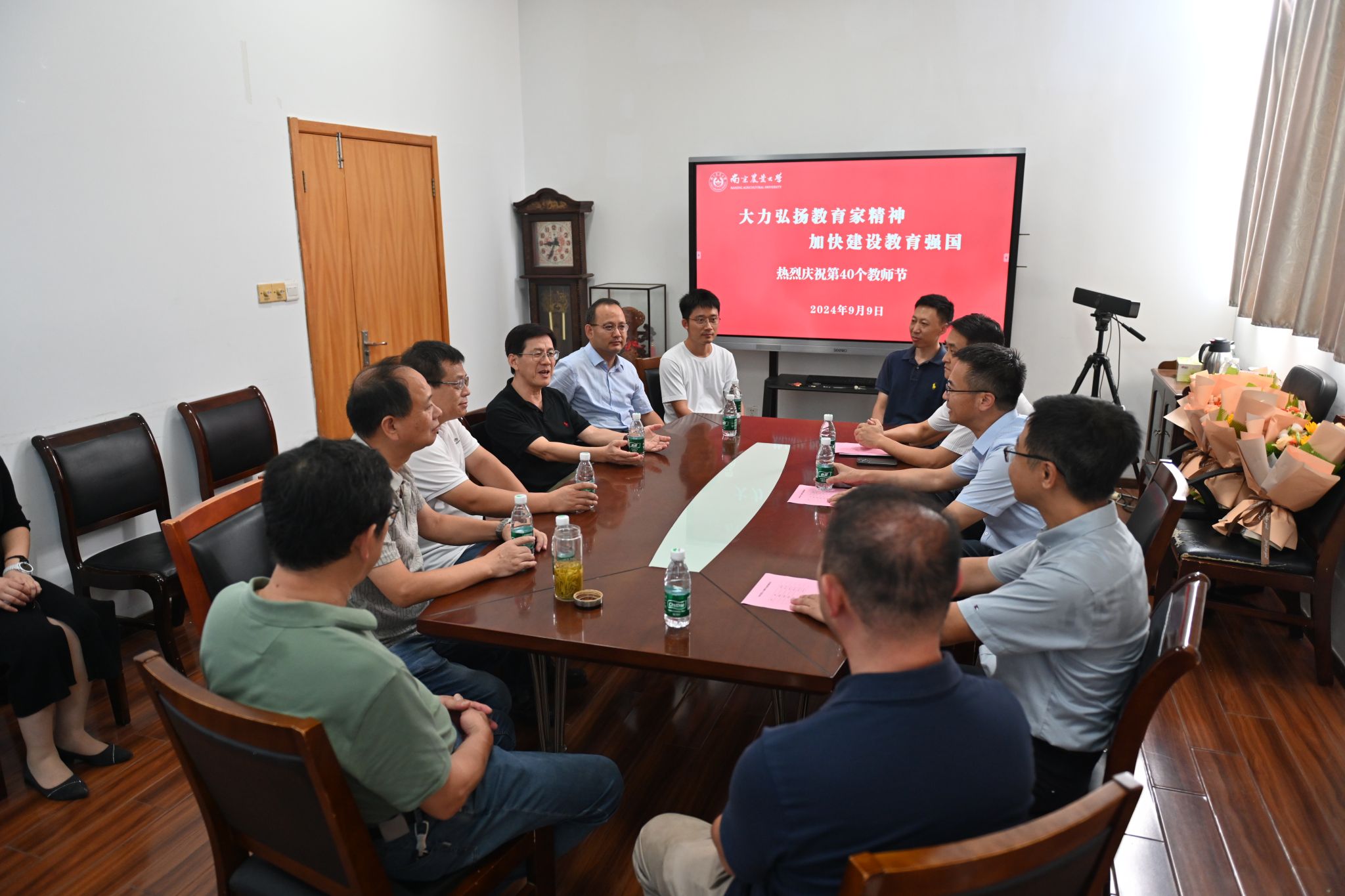 陈发棣向与会教师代表送上节日祝福,并为教师代表一一送上鲜花。座谈交流中,陈发棣对av直播