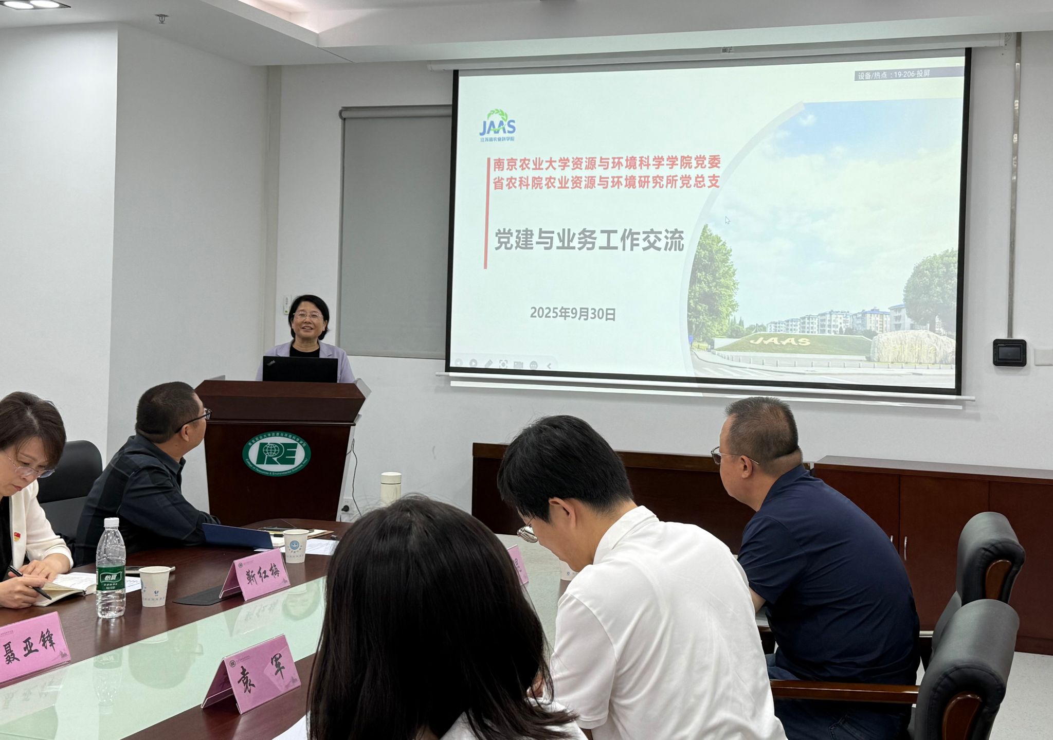 资环所一直致力于农业资源与环境领域的研究与创新,在推动农业可持续发展方面承担着重要责任。南京农大资环院将党建与科研深度融合的模式非常值得研究,通过党建活动激发教师的科研热情和社会责任感,为学科发展注入了强大的精神动力。她希望双方能够建立常态化的交流机制,定期分享党建和科研工作经验,共同探索在新时代背景下以高质量党建引领农业资源与环境领域的高质量发展。