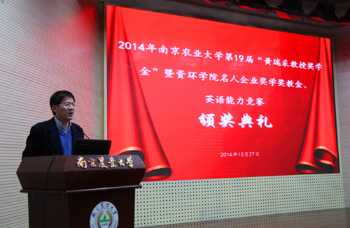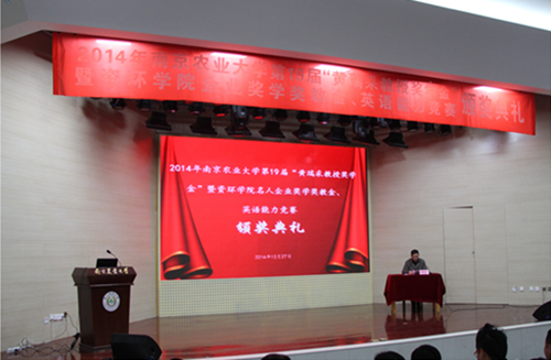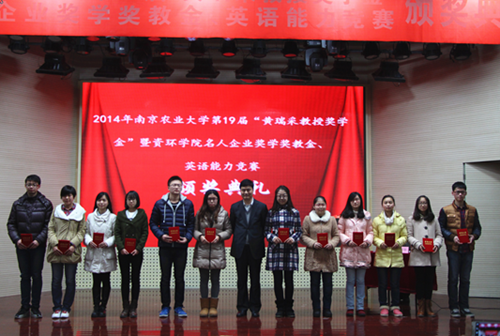 名人企业奖学金教金、英语能力竞赛颁奖典礼于大学生活动中心举行。江苏省农科院书记,黄瑞采教授奖学金基金理事长严少华,中科院南京土壤研究所书记蔡立,黄瑞采先生的家属代表黄克明,av直播