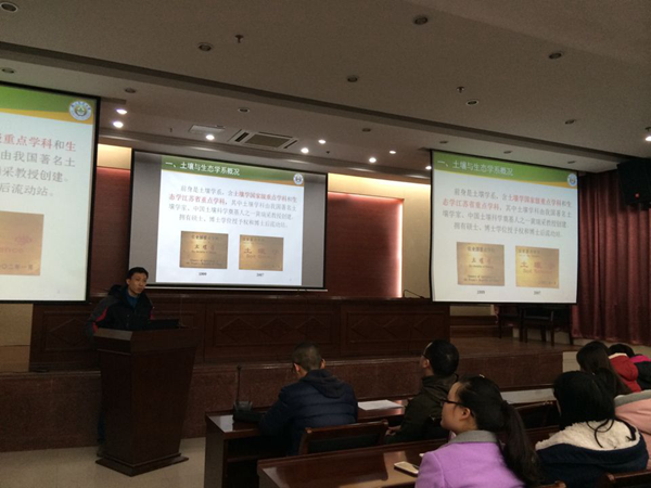 2016年2月25日18:15,av直播 在资环楼一楼报告厅举行了2014级本科生导师制会议。会议由李荣副院长主持,各系主任以及中科院南京土壤研究所研究生部刘勤部长分别向学生介绍了丰富多彩的选题,学生们也表示十分感兴趣。
