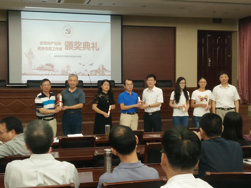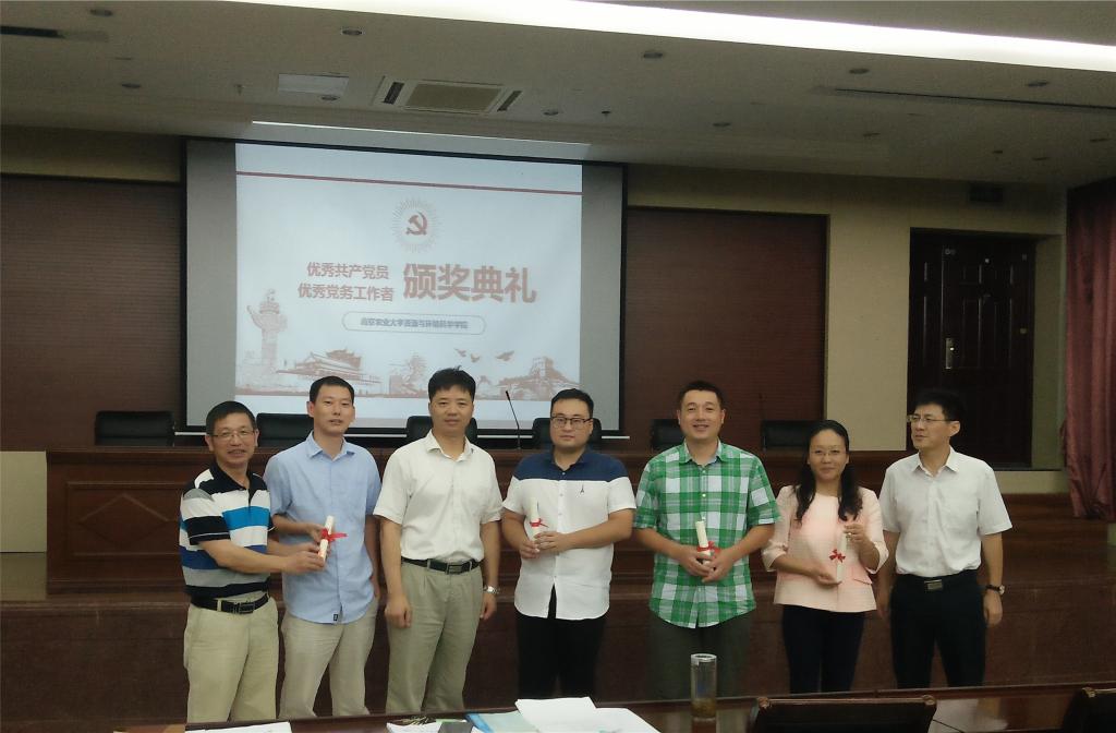 领导给获得院优秀共产党员、优秀党务工作者的教师进行了颁奖。