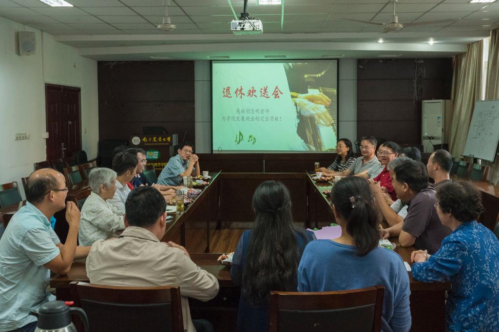 欢送会在欢声笑语中进行,胡忠明老师回忆起从前,讲自己如何与环境专业结缘,又是如何从北师大的本科到南京大学读研再到南农教学。胡忠明老师表示,南农对自己影响很大,南农也是实现自己从小以来教师梦的主要平台。接着胡忠明老师就自己在南农的科研工作、学生工作、教学工作、社会工作四个方面做出总结,他表示,自己在学生工作中基本做到了与同学融洽相处;在教学工作中为av直播