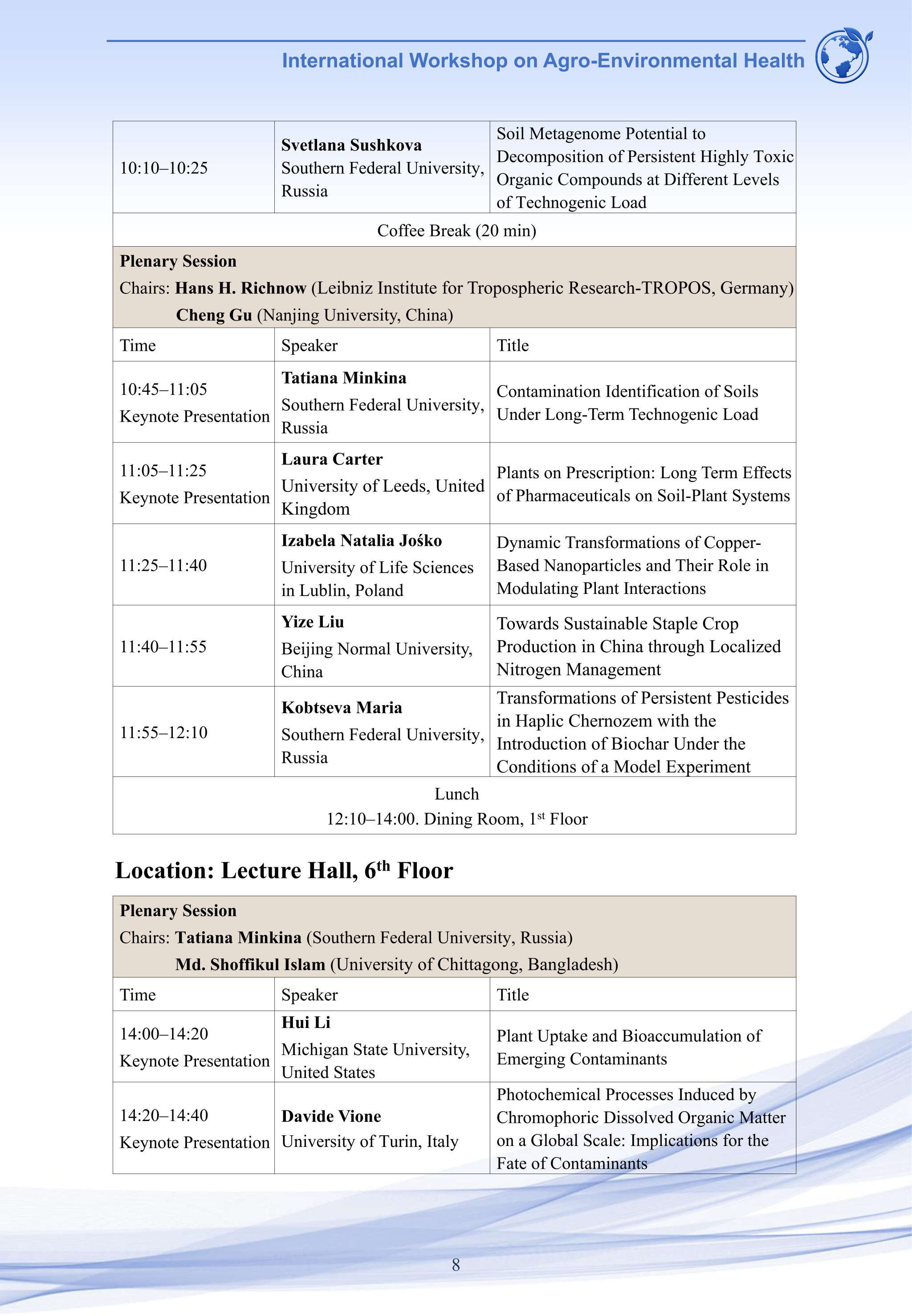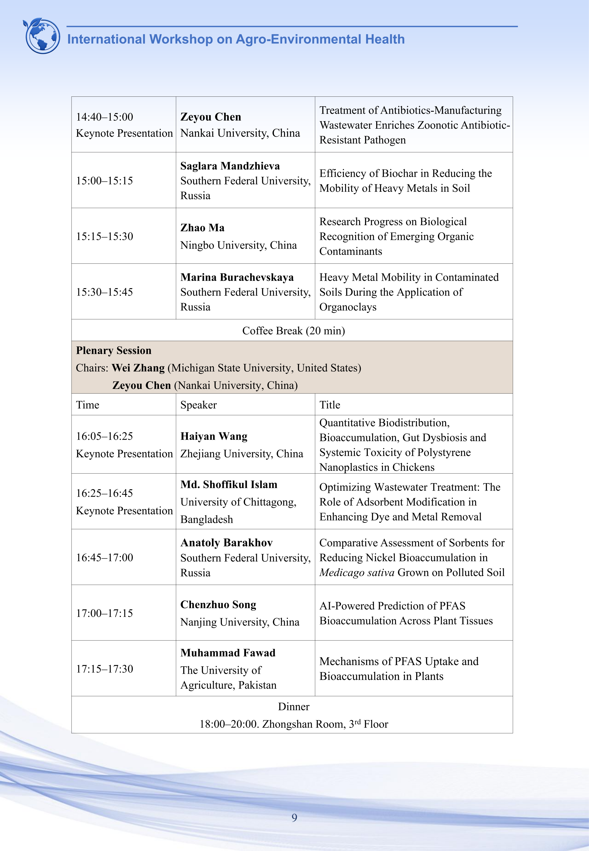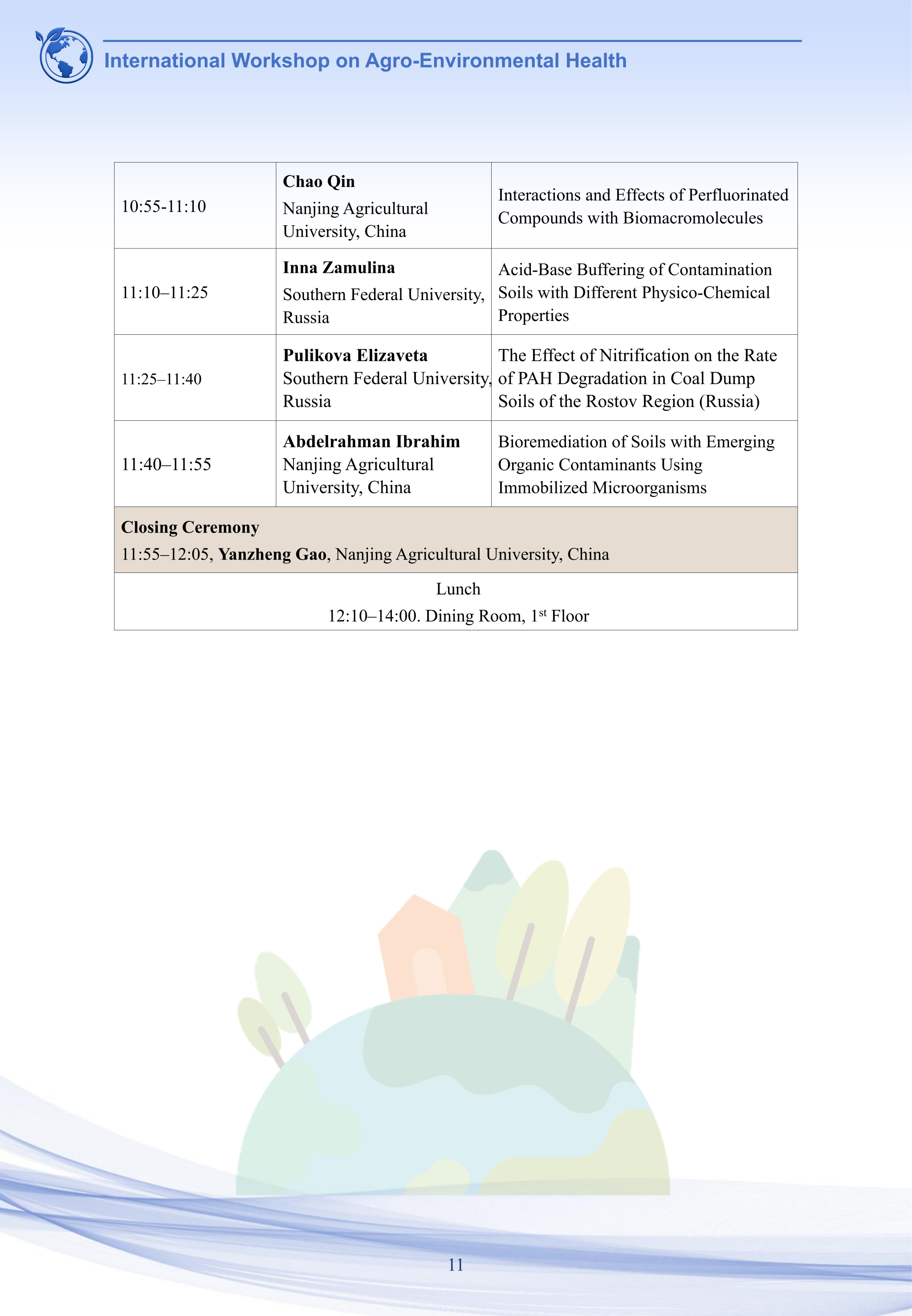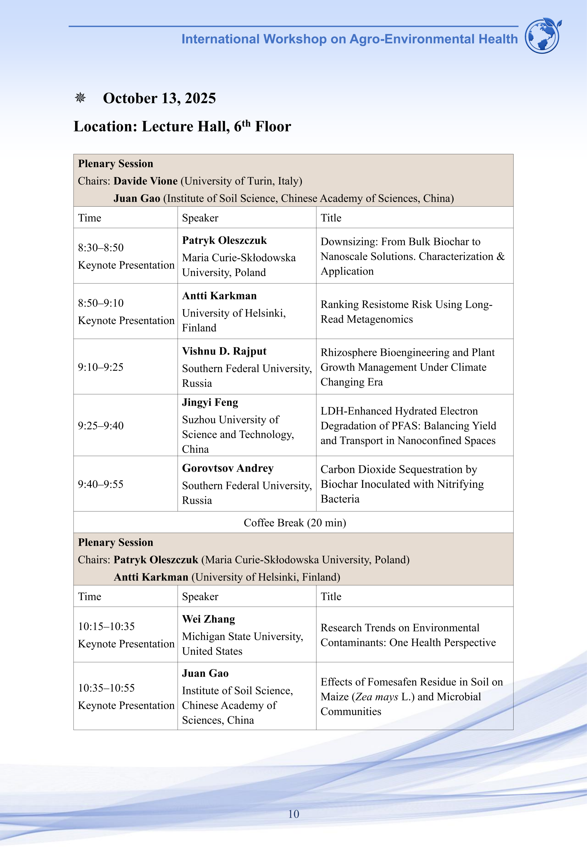 2025农业环境健康国际学术研讨会将于2025年10月11-14日在江苏省南京市av直播 学术交流中心(翰苑宾馆)召开,欢迎感兴趣的老师和学生参会交流。会议议程如下: