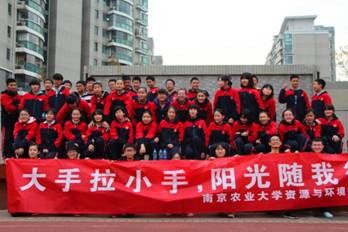 班会活动中,资环志愿者们带领孩子们玩起了“垫砖过河”和“猛龙过江”游戏,游戏将孩子们分为五组,各组在相应的志愿者的引导下逐步融入到小组的集体中团结协作,争夺冠军,其乐融融。活动接近尾声时,志愿者们与孩子们依依不舍地道别,合影留念。