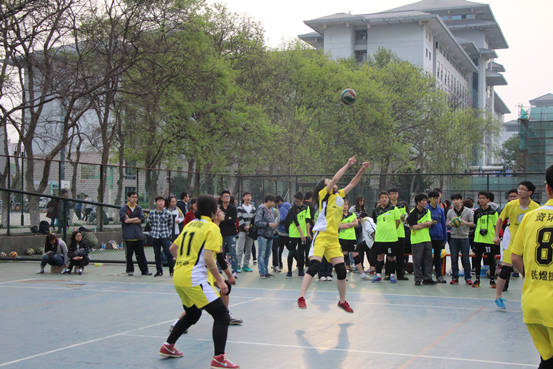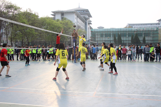 在第一节比赛中,资环院状态不佳,被经管院一直压住比分,虽然中途追平过比分,但依然败下阵来。第二节比赛,资环院配合默契,加上经管院击球手接连扣球失误,资环院率先夺得赛点,不料经管院突然发力竟然将比分追平,资环院及时暂停调整姿态,最后连胜两球赢下第二节。第三节经管院状态不佳,资环院7号贾乐天多次扣杀得分,资环院14:11再次夺得赛点,资环院发球踩线丢分,扣球被拦网,接连丢分,竟然再次比分追平,观众屏息,关键时刻,经管院发力拿下两分,取得胜利。