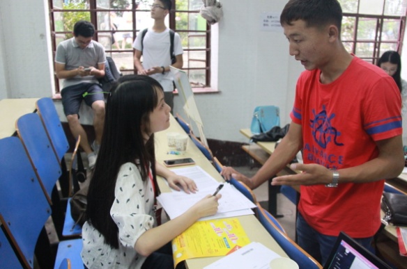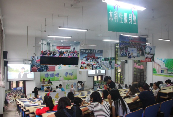 志愿者们从9月3日下午开始装扮迎新教室,迎新教室里挂满了资环学子生活掠影的展板,以期待给新同学展示av直播