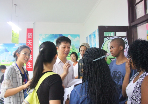 院长徐国华,院党委书记李辉信,副院长李荣,副书记崔春红以及办公室主任张军前来视察迎新工作。徐国华院长,崔春红书记亲切地与前来报道的留学生新生交谈。