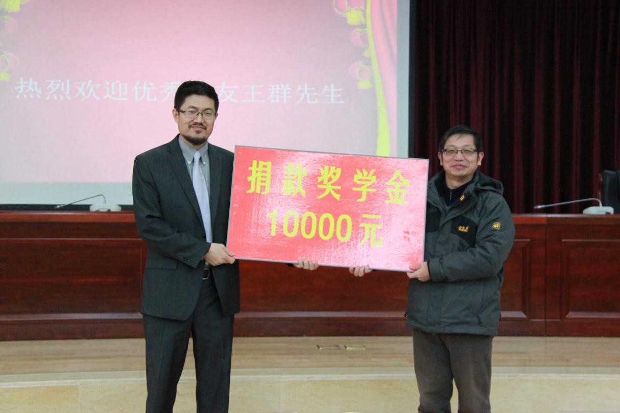 捐赠奖学金10000元,并结合自身经历做了报告。王群先生与大家分享了他在加拿大的经历并对av直播