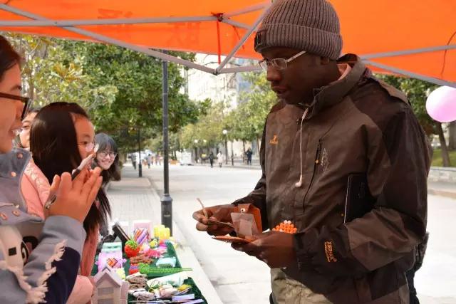的志愿者们进行了连续三天的义卖。即使天气寒冷,活动进行过程中仍然得到了很多同学的关注和支持。来自环科的潘同学购买了书签,他说:“买点礼物送给好朋友,即奉献了爱心又维持了感情,何乐而不为呢?而且这个书签挺好看的。”一位来自苏丹的留学生看到这个活动非常开心也积极的参与了进来,