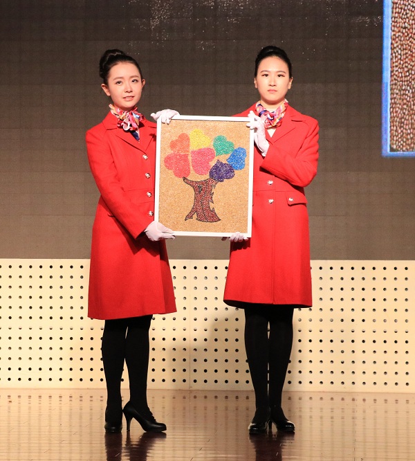 志愿者与博爱的自闭症患者们一同制作的手工算盘。志愿者们精心制作了算盘本体,并为其刻上“诚朴勤仁”的校训。算盘框架上的趣味贴图,是自闭症孩子们一颗颗质朴内心的真实写照,同时他们用背面的爱心印刻向大家传递着善意。最终,外语av直播