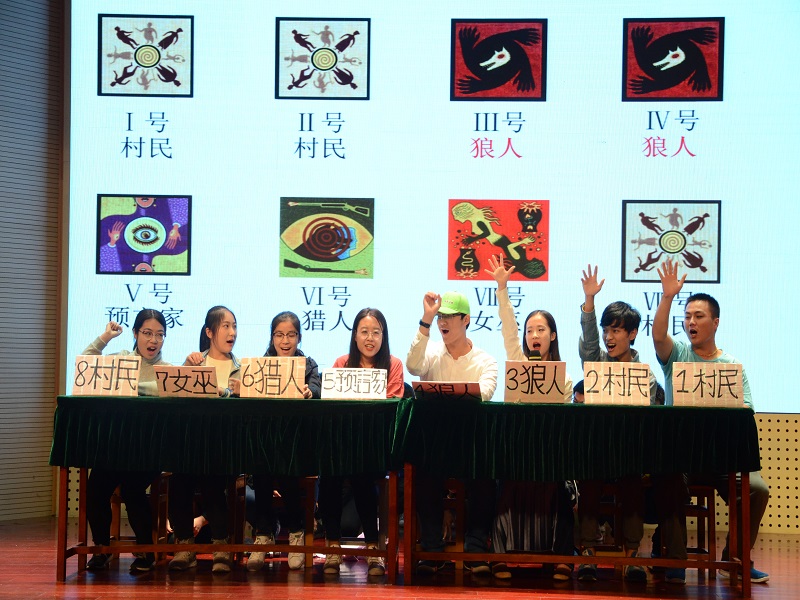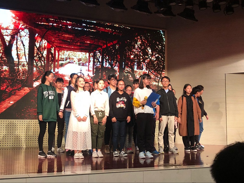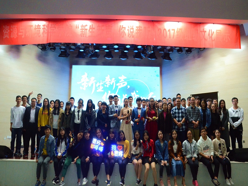 学科、为资源与环境努力学习,作出贡献。1703班的节目《成长》以歌曲为载体讲述了1703班的同学们从高中毕业到大学的成长故事,长笛伴奏的《刚好遇见你》笛声悠扬,歌声动听,接着一首全班合唱的《Love Story》让人不禁憧憬他们又将在未来四年中书写怎样的华美篇章。1702班的节目却别出心裁以《以没有名字的节目》为题,以情景剧的形式向人们展示了一场情节跌宕起伏的“狼人杀”,每次天黑之后都是一个精心设计的笑点,配合同学们的卖力表演,赢得全场的笑声与掌声。