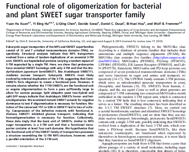 上一篇:Functional role of oligomerization for bacterialand plant SWEET sugar transporter family