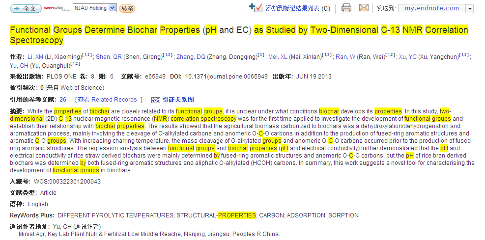 Functional Groups Determine Biochar Properties (pH and EC) as Studied by Two-Dimensional C-13 NMR Correlation Spectroscopy