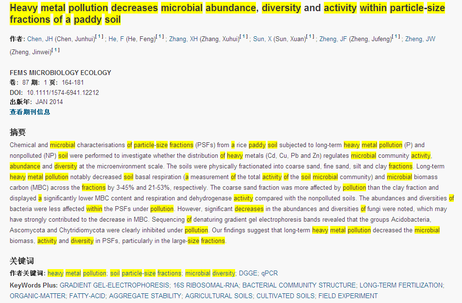 Heavy metal pollution decreases microbial abundance, diversity and activity within particle-size fractions of a paddy soil