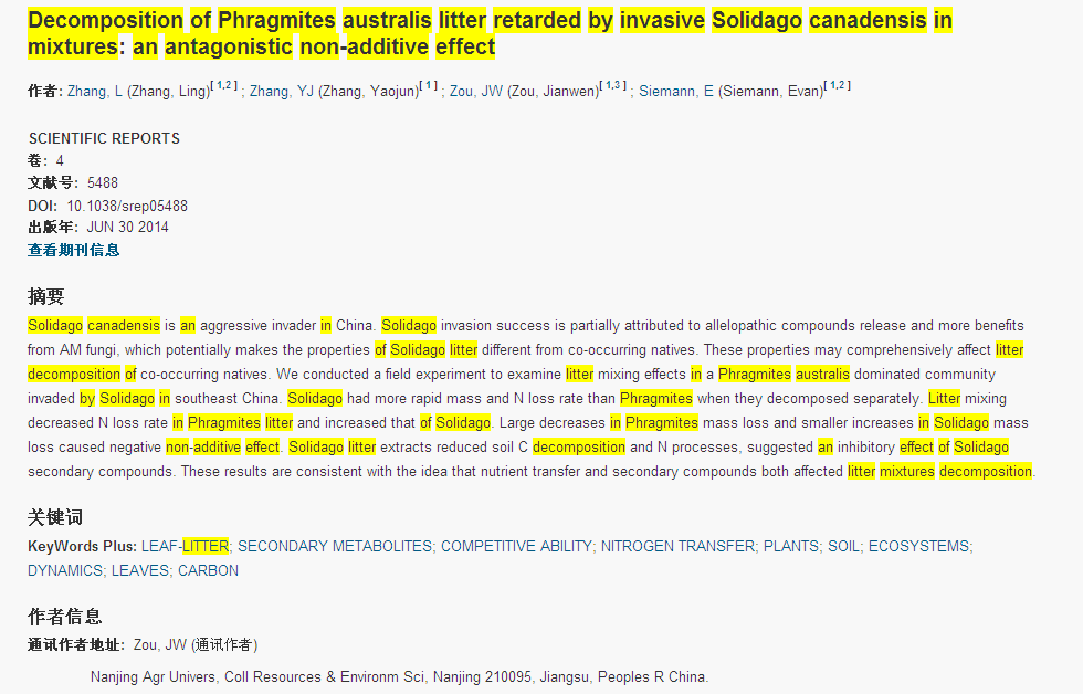 上一篇:Decomposition of Phragmites australis litter retarded by invasive Solidago canadensis in mixtures: an antagonistic non-additive effect