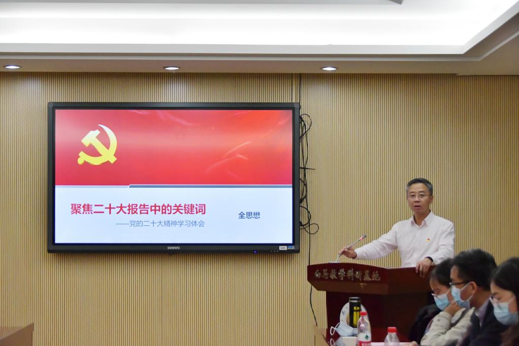 院党委书记全思懋作了题为“聚焦二十大报告中的关键词——党的二十大精神学习体会”的领学报告。他表示,学习党的二十大精神要结合当前我国高等教育和av直播