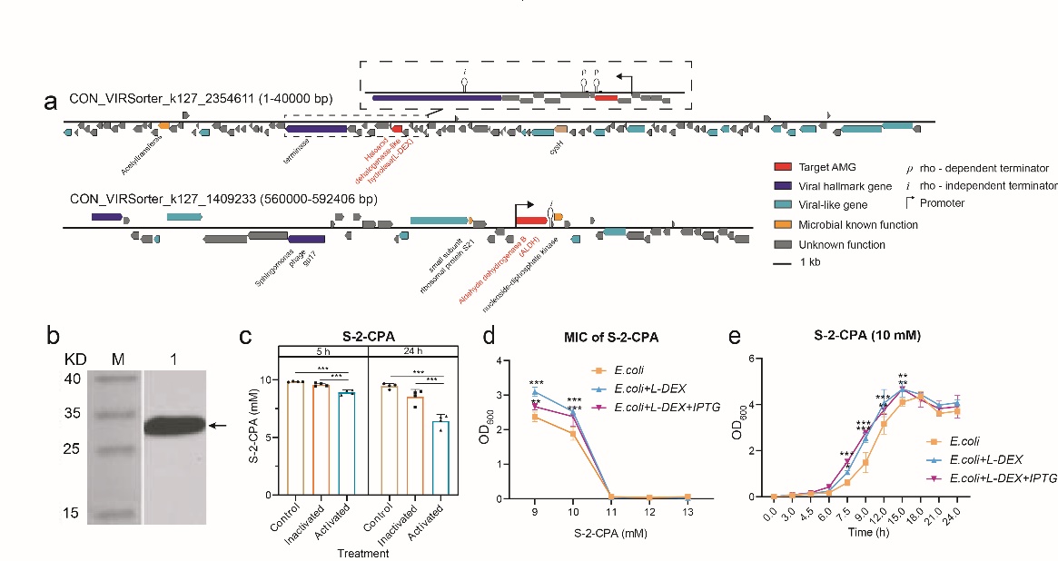胡锋教授团队的最新研究成果《Organochlorine contamination enriches virus-encoded metabolism and pesticide degradation associated auxiliary genes in soil microbiomes》。该研究通过宏基因组和宏病毒组测序技术研究了噬菌体编码的辅助代谢基因在有机氯农药污染土壤中的富集机制。随着农药胁迫的升高,噬菌体群落编码与农药降解的辅助代谢基因的多样性及丰度显著增加。通过基因合成与表达试验验证病毒编码的L-2-卤酸脱卤酶基因 (L-2-haloacid dehalogenase gene, L-DEX) 具备降解 L-2-卤酸农药前体的能力,从而在亚抑制农药浓度下改善细菌生长。研究结果为探明病毒群落协助宿主抵御土壤中农药污染逆境胁迫的过程与机制提供了新的科学认知。