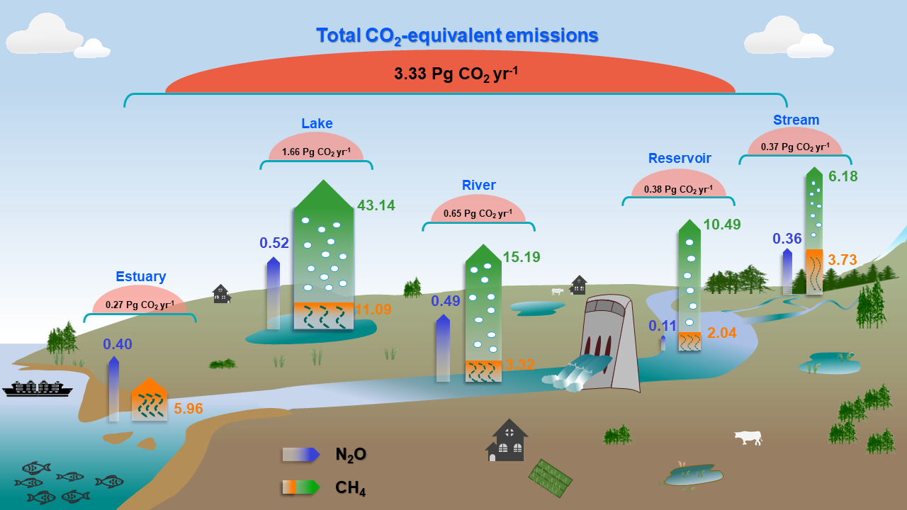 人类活动引起的大气温室气体浓度攀升是导致全球变暖的主要原因,其中温室气体甲烷(CH4)和氧化亚氮(N2O)对全球温室效应的贡献仅次于二氧化碳。由于人类活动向水体输入了大量碳氮营养物质,导致内陆淡水(河流、水库、湖泊、池塘、溪流)和河口水体成为大气CH4和N2O的重要排放源,近年来成为全球变化研究关注的前沿。目前有关内陆水域和河口CH4和N2O排放量的全球估算存在很大不确定性,主要是对其通量组分和观测方法学差异缺乏系统性定量评估,导致大量实测结果与IPCC的全球默认值之间存在较大缺口。因此,基于全球观测数据的集成,科学评估人类活动引起的全球内陆和河口水体CH4和N2O排放量极其重要。