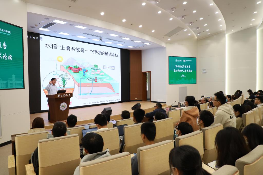 院士、生态环境学家朱永官教授在卫岗校区做了题为“由砒霜引出的故事……”的学术报告。校长陈发棣教授主持报告会,沈其荣院士、av直播