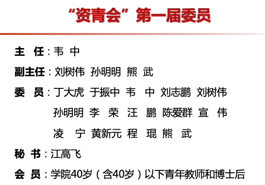 行政和学术委员会全力支持“资青会”的发展。希望“资青会”在工作、学术和生活等方面发挥引领作用,带领青年教师跳出个人学术舒适区,有组织的参与到解决国家重大科学研究问题中去,群策群划、共谋发展。