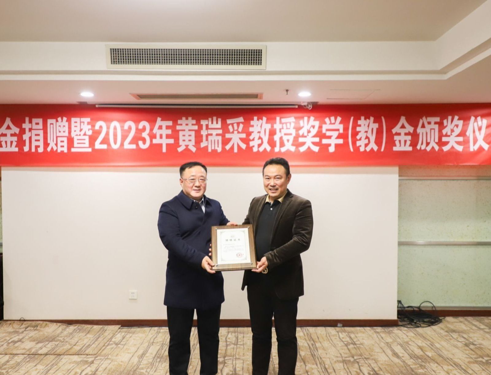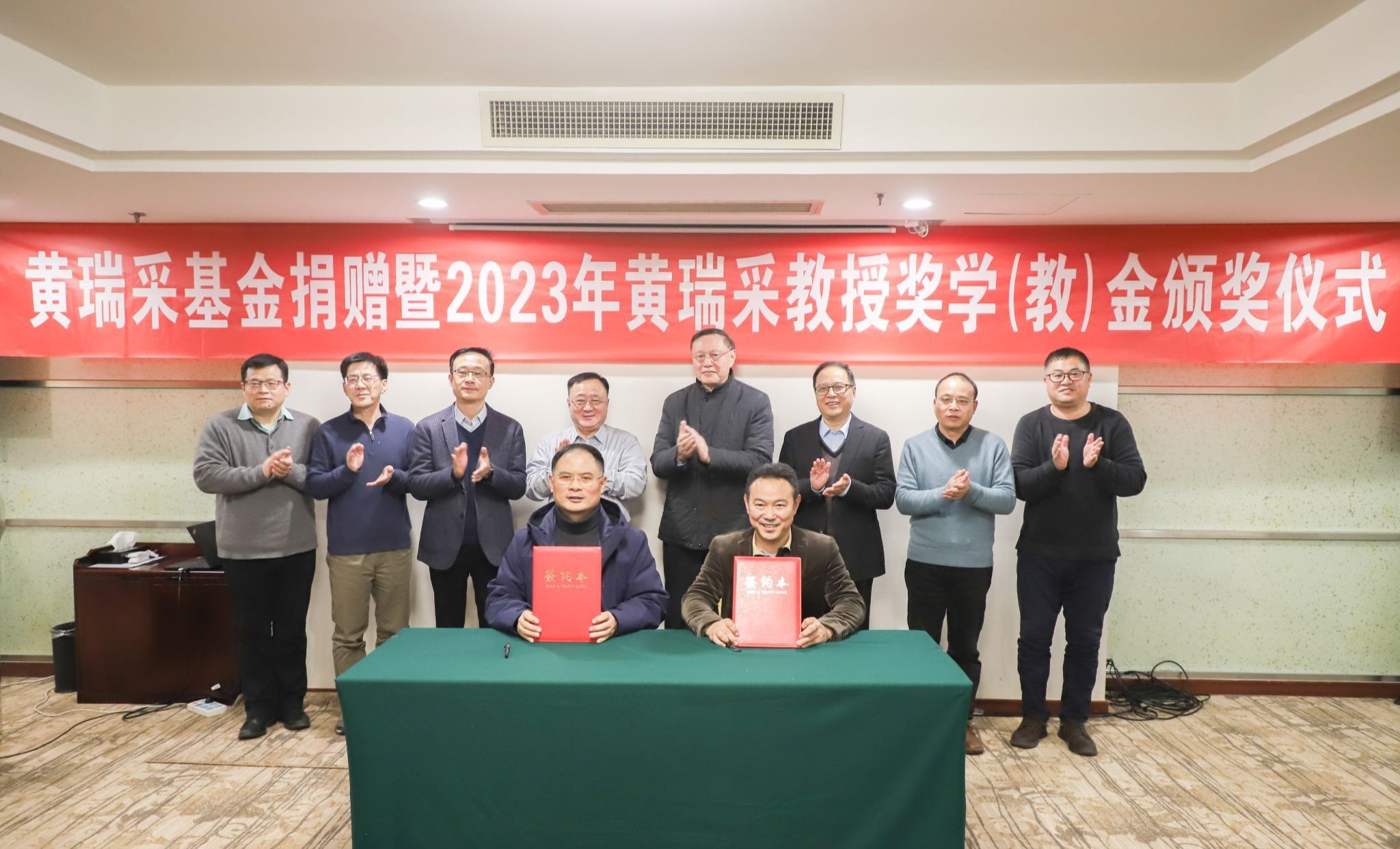 黄瑞采基金捐赠暨2023 年黄瑞采教授奖学(教)金颁奖仪式举行。副校长单正丰,原副校长胡锋,校友 华南农业大学副校长仇荣亮、广东省农业科av直播