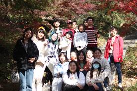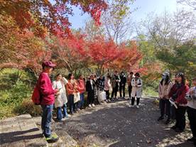 菁英班同学与李福春老师一行在栖霞山红叶谷会合,菁英班代表许家正同学介绍了此次参加活动的菁英班同学以及本次活动的大致内容与目的,希望大家在欣赏秋景的同时增进同学间以及师生间的了解,并在老师的带领下对资源环境专业有更多的认识与感悟。之后大家一起爬栖霞、赏枫叶,并合影留念。