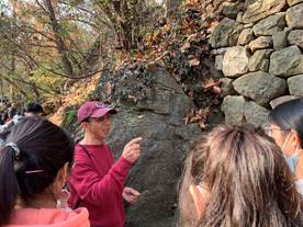 李福春老师在多个地质学点位向菁英班同学进行了地质学知识的讲解,让同学们看到了很多典型的地质现象,学到了很多地质学知识。李福春老师还将地质学内容与全球气候变化等全球生态环境问题联系起来,引导菁英班同学对资源环境专业有了进一步的思考,拓宽了同学们对本专业的了解与认识。